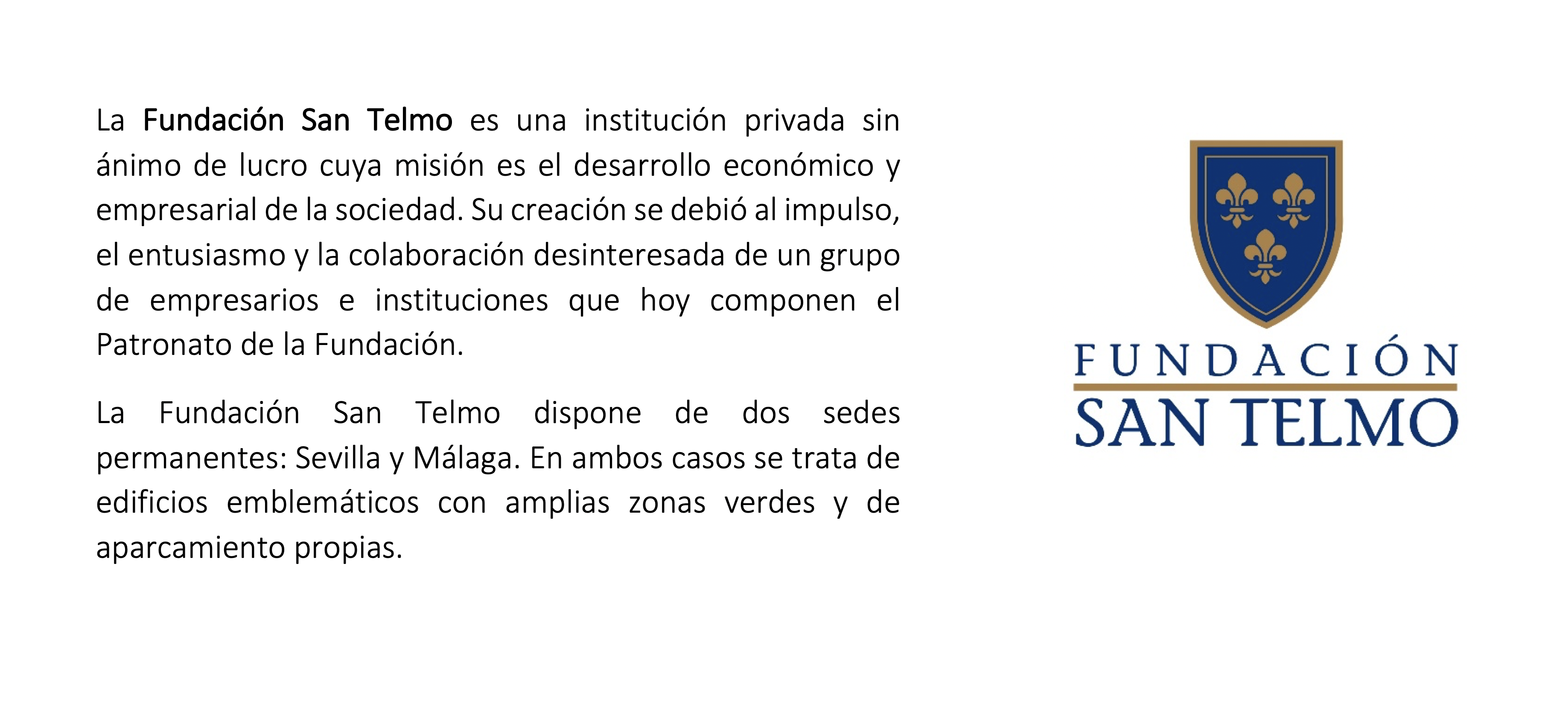 San Telmo Business School comenzó con sus actividades de formación el 24 de octubre de 2002. El primer proyecto fue AD-1 (Alta Dirección de Empresas). Meses después, en abril de 2003, la Fundación ofreció el Programa PYMEX.